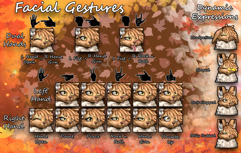 - Dynamic interactions being Head Patting, Booping, Belly Rubbing, Booty Slapping. Each can be toggled with extra toggles for allowing yourself to trigger them and a toggle for having expressions played for each of them. Belly rub and happy expressions will make tail wag.
